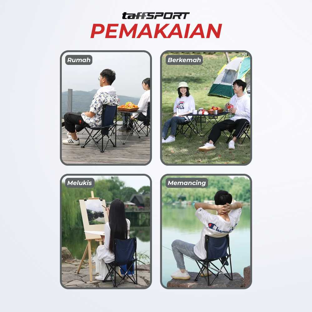 Kini Anda tak perlu lagi kebingungan mencari tempat duduk saat memancing, piknik, atau berkemah. Anda hanya perlu membawa kursi lipat outdoor dari TaffSPORT ini dengan ringkas, lalu buka lipatannya saat Anda sampai di tujuan. Dengan begitu, pakaian Anda tak akan kotor akibat duduk sembarangan. Kursi yang dilengkapi 4 buah kaki ini mampu menahan bobot orang dewasa dengan stabil.