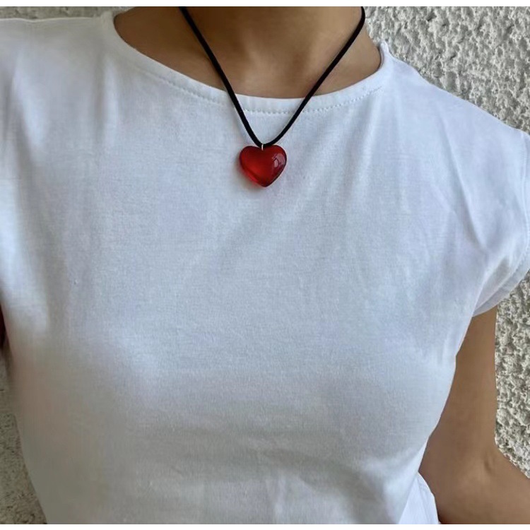 Detail [COD Tangding] Kalung Liontin Kristal Hati Sederhana Wanita Kepribadian Hip Hop Choker Perhiasan Aksesoris