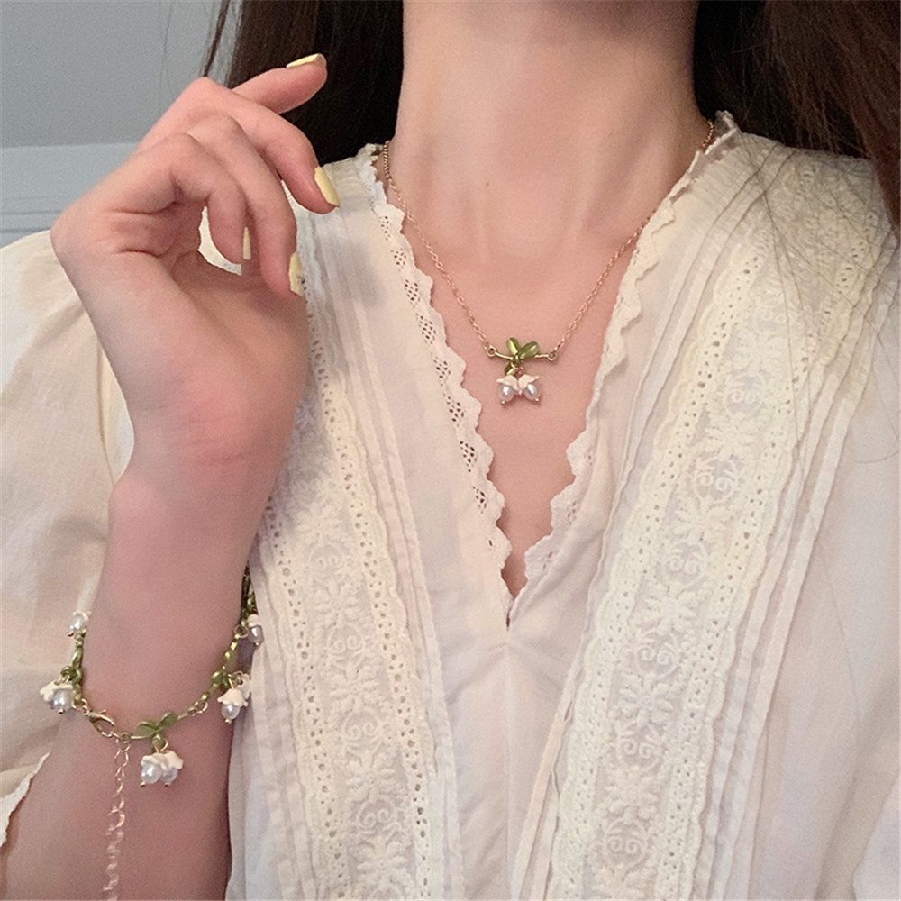 Detail 【COD Tangding】 Set Kalung + Gelang + Anting Tusuk Gaya Retro Motif Bunga Anggrek Putih Untuk Perhiasan Wanita