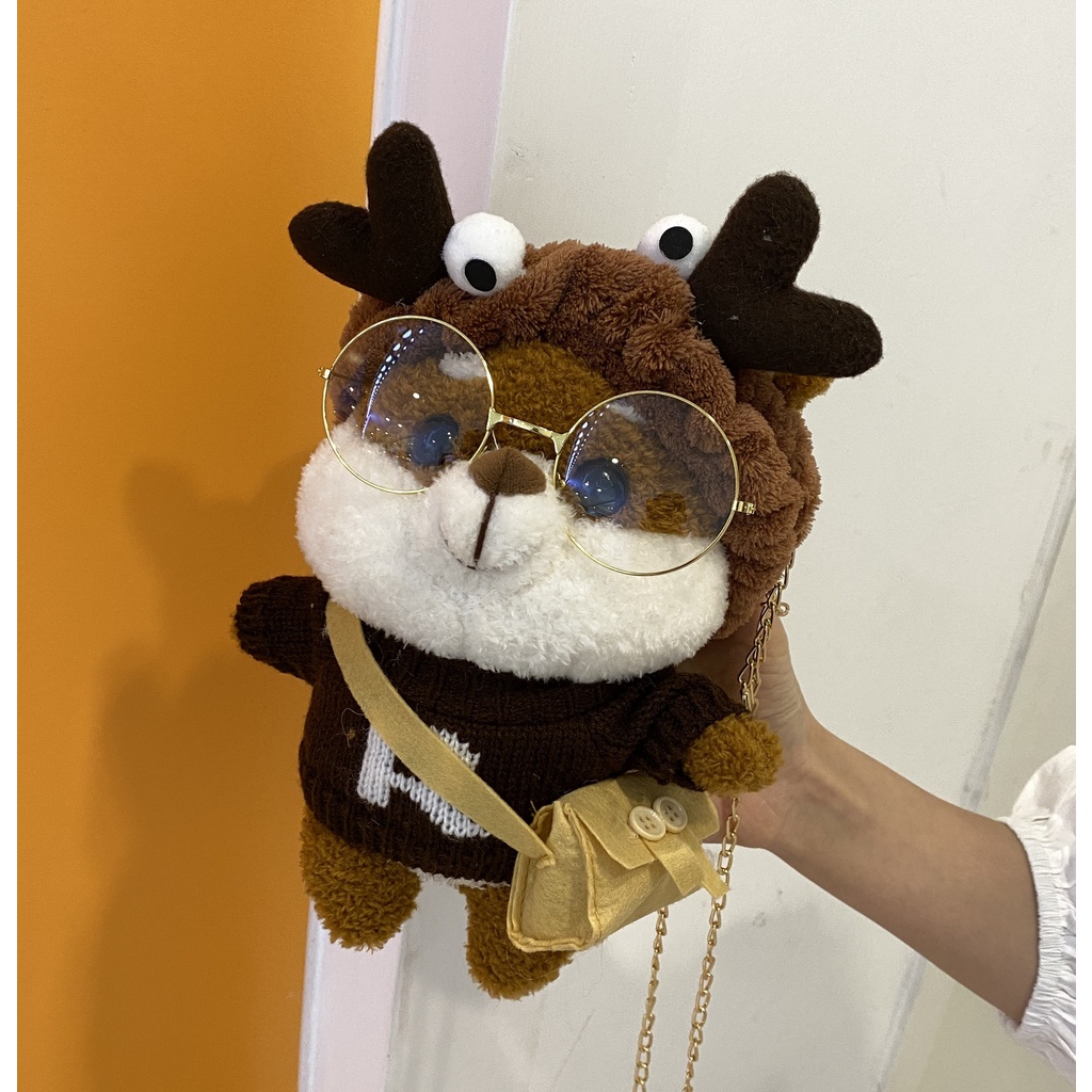Tas Wanita > Tas Selempang & Bahu Wanita > (COD) Tas boneka free kacamata bando selempang wanita Iucu Fashion Motif Kartun Karakter Hewan Beruang Anak & Dewasa