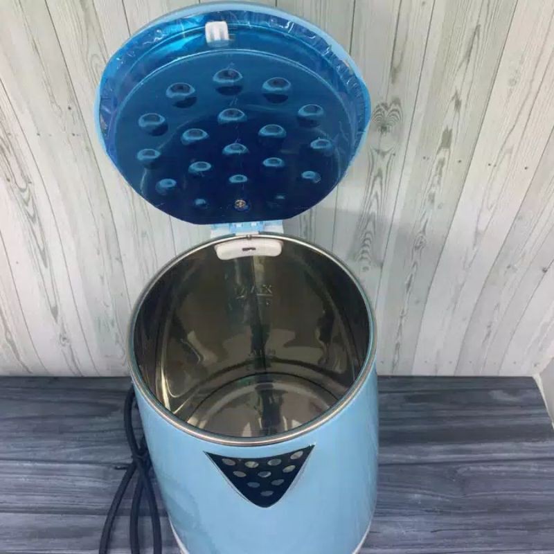` Stainless Steel. ` Dilengkapi Lampu Indikator. ` Buka/ Tutup Menggunakan Tombol. ` Sistem Proteksi Ganda; Otomatis Mati Jika Air Sudah Mendidih Atau Tanpa Air. ` Penempatan Pada Alas 360 derajat. ` Elemen Pemanas Tersembunyi. ` Penyimpanan Kabel Yang Praktis. ` Daya Listrik 600 WATT ` Tegangan 220V/ 50 Hz