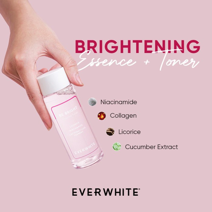 Everwhite Essence Toner merupakan perpaduan dari toner dengan essence multifungsi yang diperkaya dengan kandungan pencerah kulit.