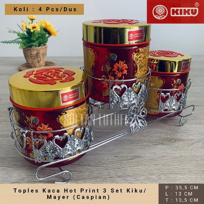 Isi Kemasan : - 1pcs Rangka Besi Motif Bunga ( Silver ) - 3pcs Toples Kaca Bulat - Dirancang menggunakan silicone seal, kedap udara. - Bisa digunakan untuk menyajikan 3 hidangan sekaligus seperti cake, maupun camilan lainnya. - Cocok buat acara keluarga maupun hiasan di meja rumah anda.