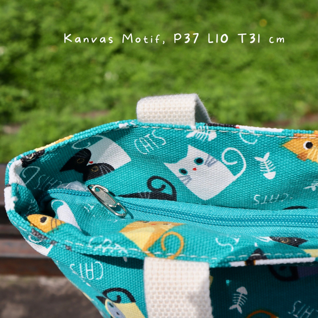Bahan : Kanvas print Dalaman : Furing Ukuran Bag : Ada di gambar Berat Bersih : 300 g Tali : Tali Kualitas Bagus Color / Motif : Buanyak Banget Ada Resletingnya yaa