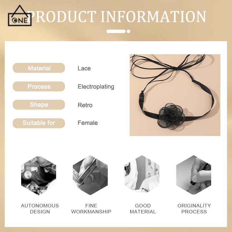 Detail COD❤️Waktu Seksi Choker Kerah Perhiasan Retro-Hitam Renda Camellia Kalung Pesta Makan Malam Neck-Band Wanita Fashion Adjustable Neckl-A.one