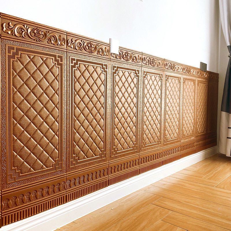 COD Wallpaper Foam 3D Motif Jendela Pintu Kayu Jati Putih Kayu Gold Marmer ukuran 70 x 90 CM / Dekorasi Dinding Kamar Murah
