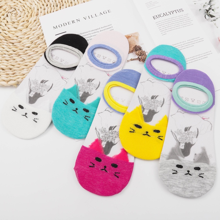 Detail (COD) Wanita Kaus kaki kristal transparan modis kaos kaki pola kucing Lucu Socks 09S