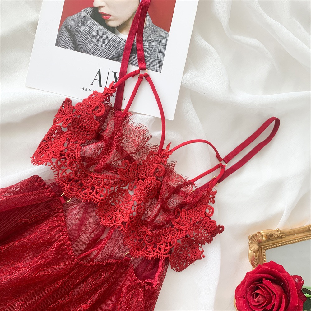 Detail (COD) Wanita Pakaian dalam Sexy Lace babydoll Lingerie Mesh Baju tidur V neck piyama A386