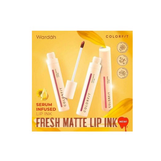 Wardah Colorfit Lip Ink Serum Infused merupakan inovasi format lip cream dengan tekstur cair yang menyegarkan serta ringan sehingga memberikan kenyamanan dan bare lip sensation pada bibir. Infused with serum (Sunflower dan Jojoba Oil) untuk melembabkan dan menyehatkan bibir. Dengan 8 warna intense, tahan hingga 8 jam, dan memberikan tampilan fresh matte (Semi Matte dengan Watery Texture Finish).