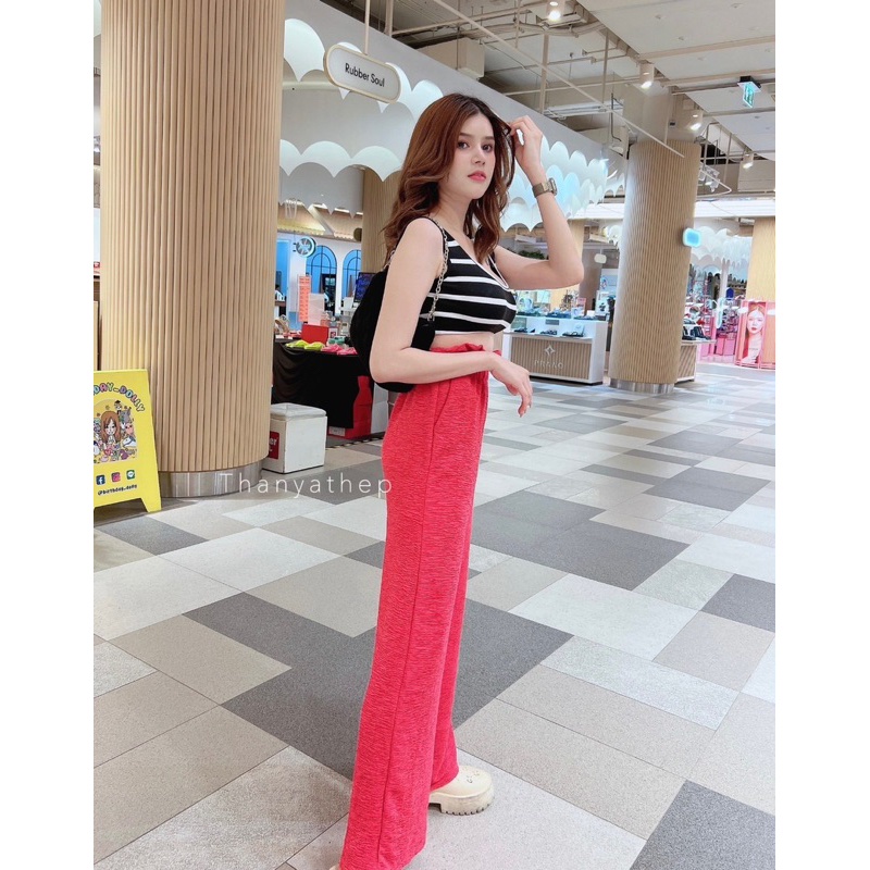 👗New collection👗 Set of 2 pieces. Crop top comes with trousers. High waist. Premium fabric. Comfortable to wear. This set is great! Beautiful, chic, looks expensive, not very outgoing Hurry up to order. 🏷️ Thanyathep Model wearing real product 1 color: pink Size shirt, bust 32-36 "pants Waist 22-32 "(stretching smock), hip 38-44", length 42'