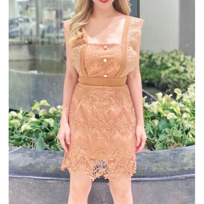 Minidress, renda, impor, mewah, dihiasi lengan pinggiran, cup payudara spons Rok bermotifnya sangat lucu.