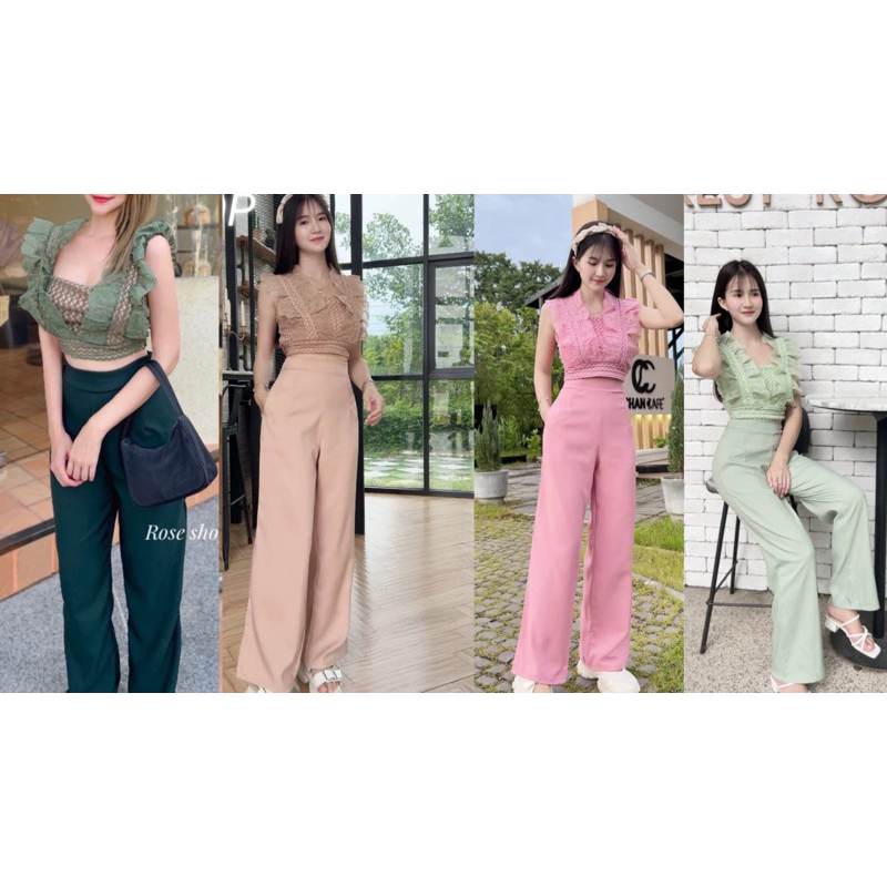 Set dapat dipakai secara terpisah. blus renda jala Celana karet belakang Dada 85-90 Pinggang 76 panjang atasan 39 panjang celana 101 Warna putih/coklat