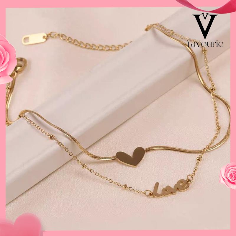 Detail CODGelang Kaki Titanium 2 Layer LOVEHuruf Hati Anti Karat Emas 18k Aksesoris Wanita Korea-FA