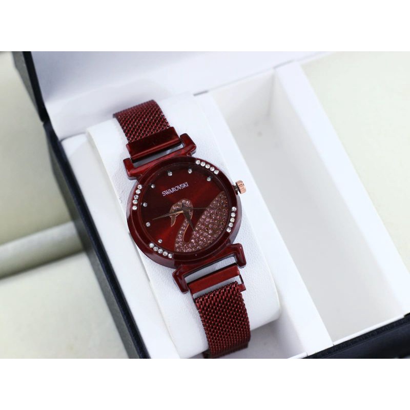 Detail (Cod)Jam Tangan Fashion Wanita SSworvski Mata Angsa1 Mata Strap Stell/Magnet(Dikirim Jakarta)