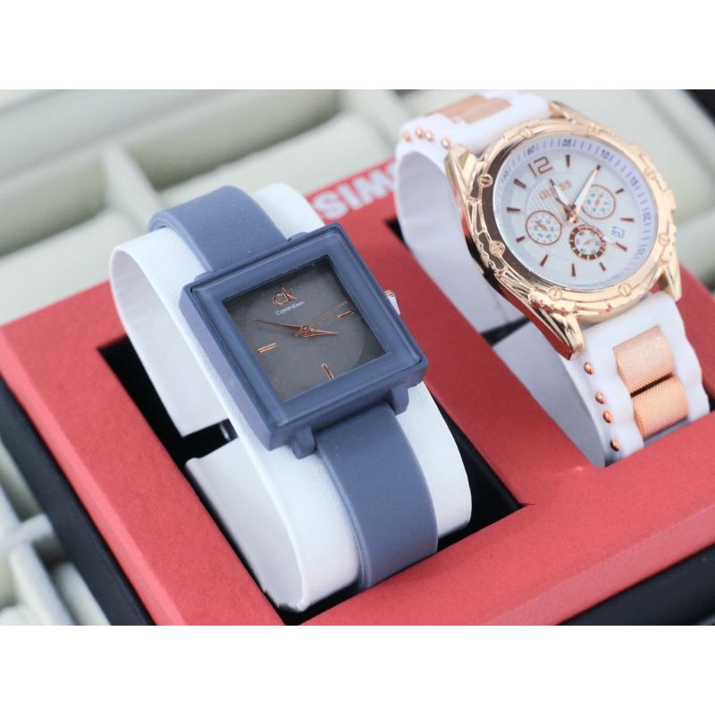 Detail (Cod)Jam Tangan Wanita Buy1 Get1 Zeka Kota+Gues Ring Tanggal Aktif Strap Rubber/Karet(Dikirim Jakarta)