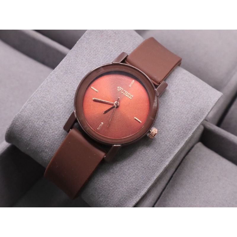 Detail (Cod)Jam Tangan Wanita Gues Bulat New Strap Karet/Rubber(Dikirim Jakarta)