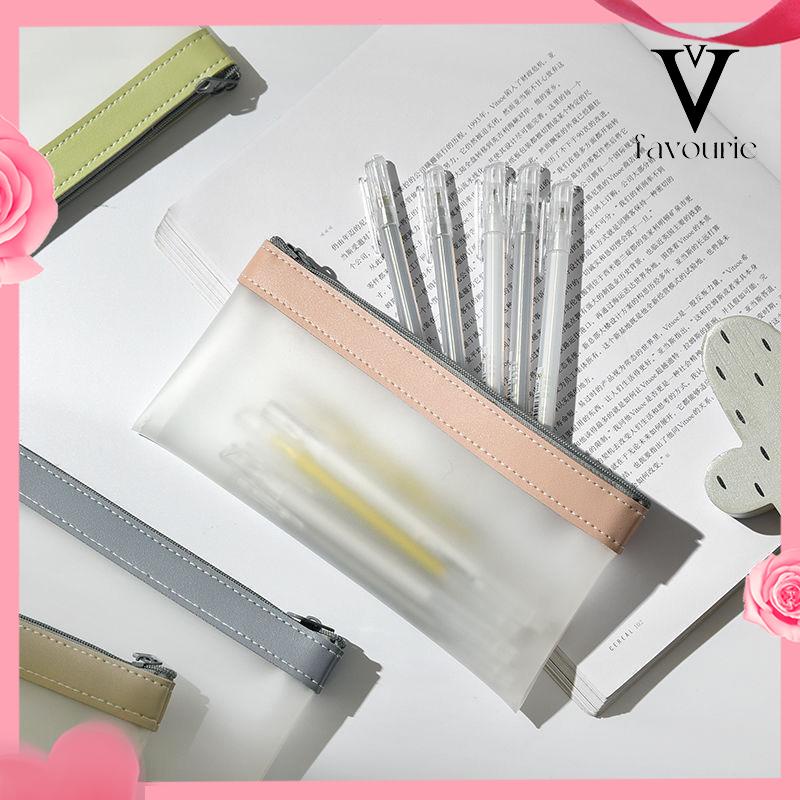 Fitur Transparan, Kapasitas besar, Sederhana, Kulit, Buram, Fashion, Portabel Ritsleting: Tempat pensil ini memiliki desain penutupan ritsleting untuk penggunaan yang mulus, kesungguhan untuk membuka dan menutup. Kapasitas besar: Dengan kapasitas besar, kotak pensil dapat menampung sekitar 10-15 pena gel. Kualitas: bahan TPU, lembut dan nyaman, desain tembus pandang, tahan air dan tahan debu. Tepi Bulat: Sudut tas alat tulis ini membulat dan tidak mudah pecah.