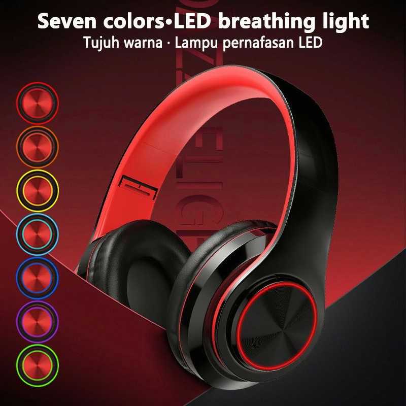 Detail (COD)Ready Stock B39 Wireless Headset Bluetooth 5.0 Colorful LED Bass Stereo Wireless Headphones Ove-Ear Headphones gaming headset