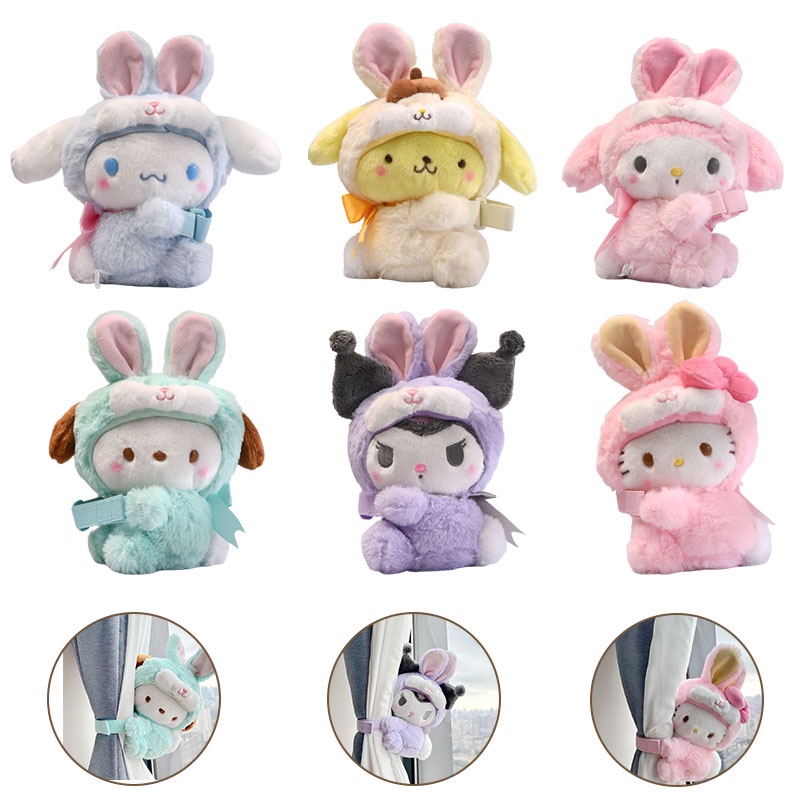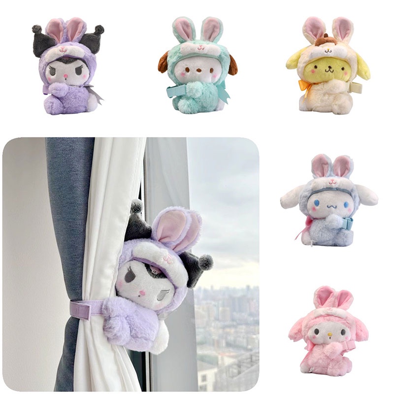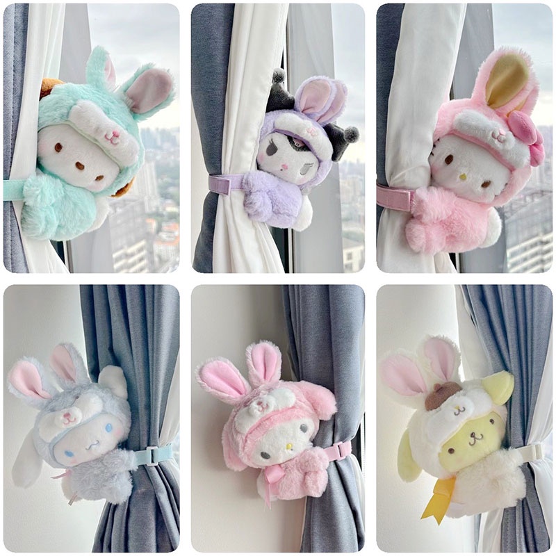 Detail Coelho Mainan Boneka Plushie Kartun Untuk Tirai Jendela Yang Menampilkan Karakter Kuromi My Melody HelloKitty Cinnamoroll Lucu.
