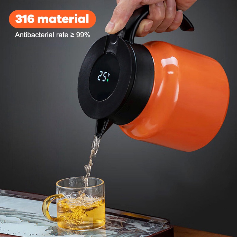 Perlengkapan Rumah > Peralatan Makan > Jug, Pitcher, & Aksesoris > Coffee Pot Thermos 316 Stainless Steel 1000ML Double Wall Vacuum Temperature Display Air Panas Pot Thermal Flask
