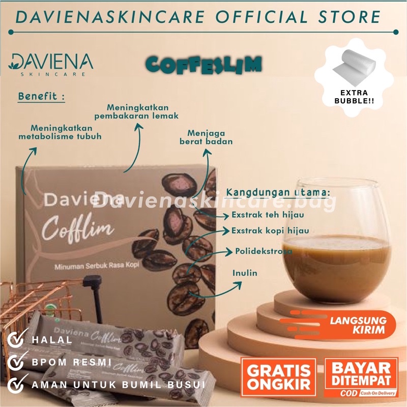 DAVIENA COFFLIM Minuman serbuk rasa kopi • INULIN Salah satu jenis serat yang larut air, yang dapat menjaga kesehatan Sistem pencernaan karena dapat bertindak sebagai prebiotik. Prebiotik adalah suatu komponen dalam makanan yang dapat Meningkatkan pertumbuhan bakteri baik dalam tubuh, selain itu Itu dapat membantu penyerapan nutrisi dalam tubuh