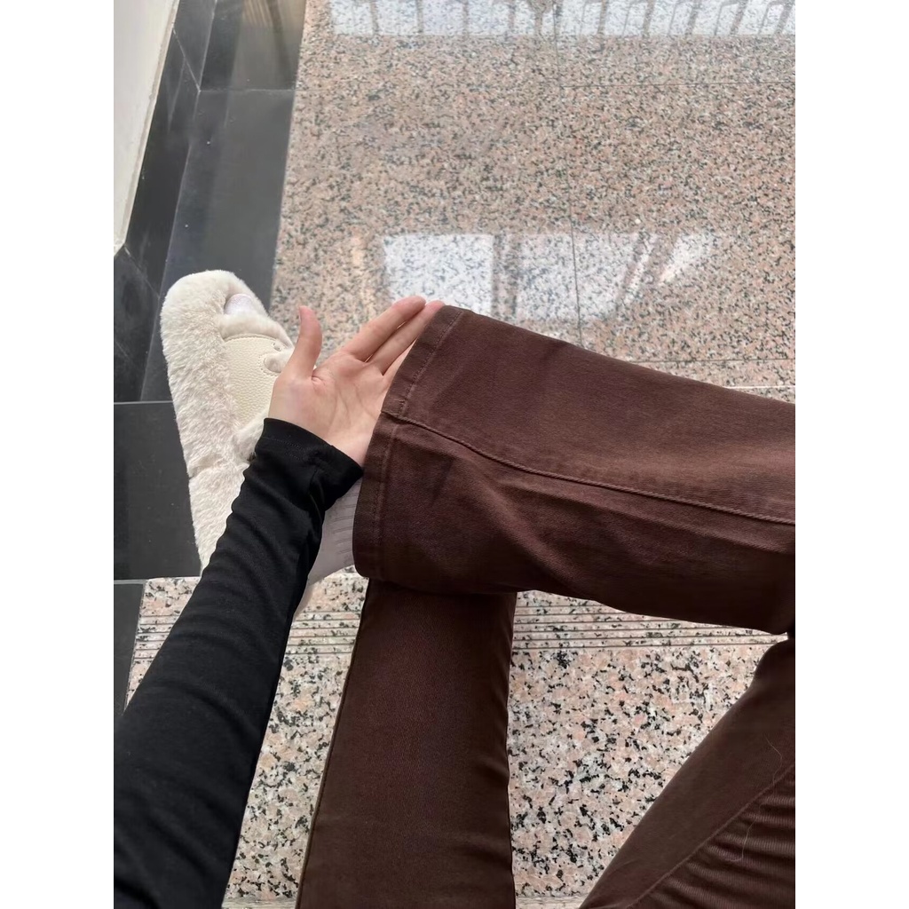Detail coklat import cewek new high waist cutbray skinny celana jeans panjang wanita kekinian