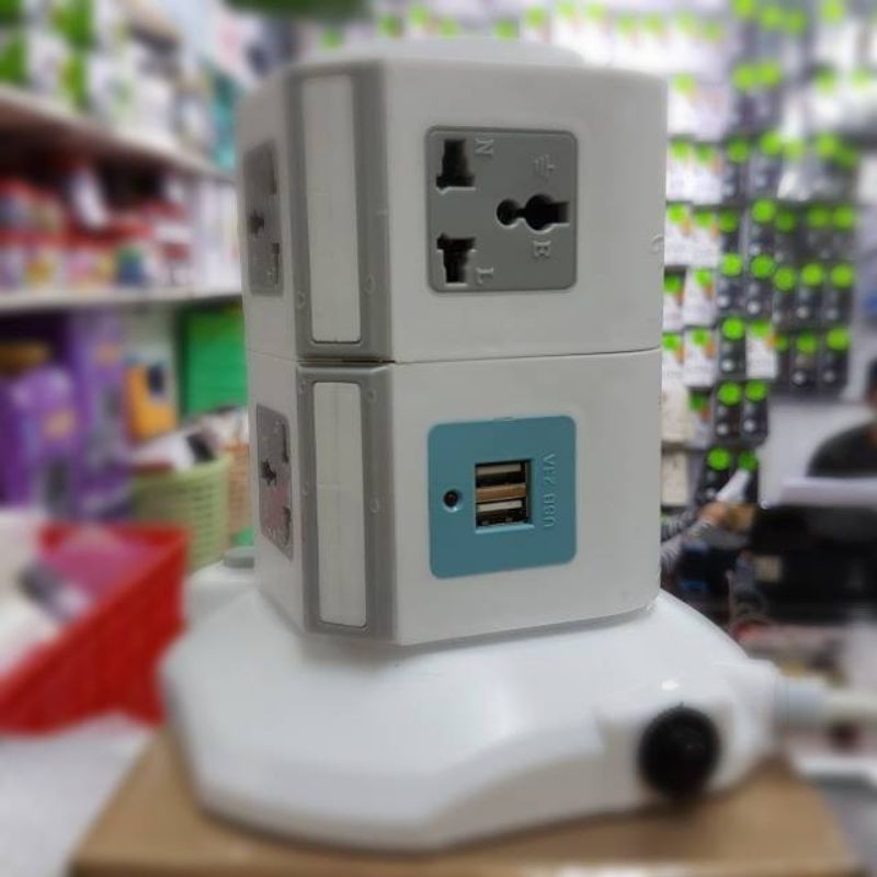 Detail Colokan vertikal square multi sock 7 lubang +2 lubang usb s1/ Colokan fortable