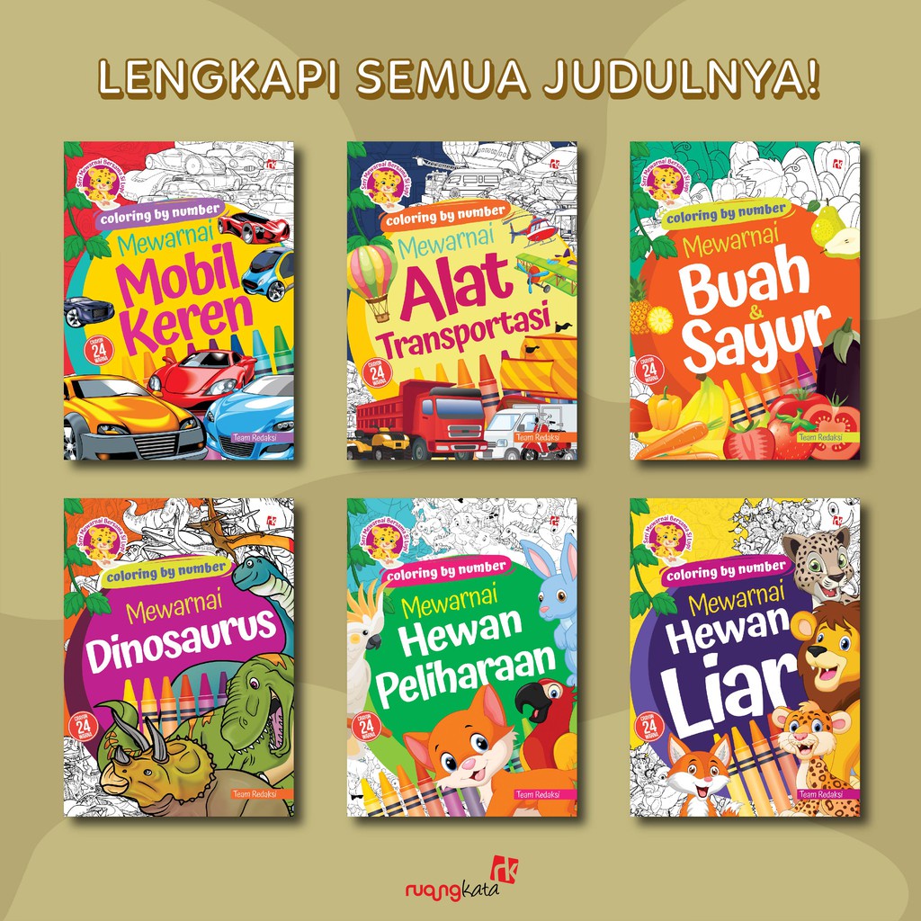 Detail Coloring By Number (Hewan Peliharaan/Hewan Liar/Mobil Keren/AlatTransportasi/BuahSayur/Dinosaurus)