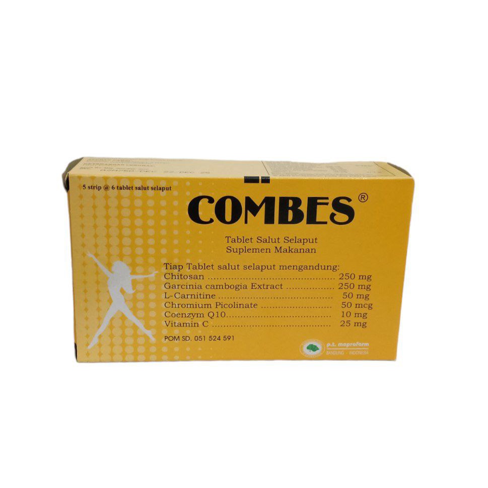 Combes merupakan tablet dengan kombinasi chitosan, ekstrak garsinia cambogia, L-carnitine, chromium picolinat, coenzime Q10 dan vitamin C yang dapat membantu mengurangi lemak tubuh.