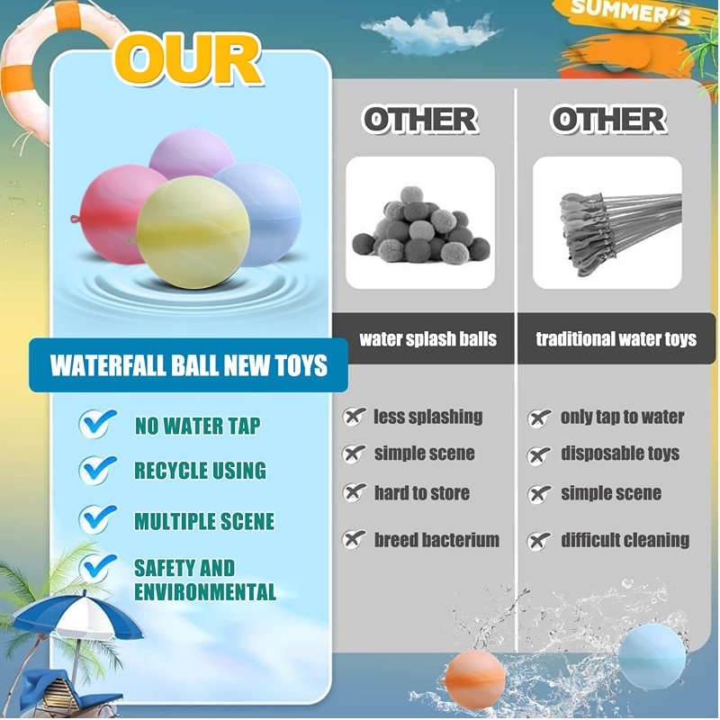 Detail Compact Novelty Reusable Water Balloons Quick Fill Gradient Colors Lucu Musim Panas Splash Bom Air Dewasa Anak Kolam Renang Luar Ruangan Pantai Permainan Mainan