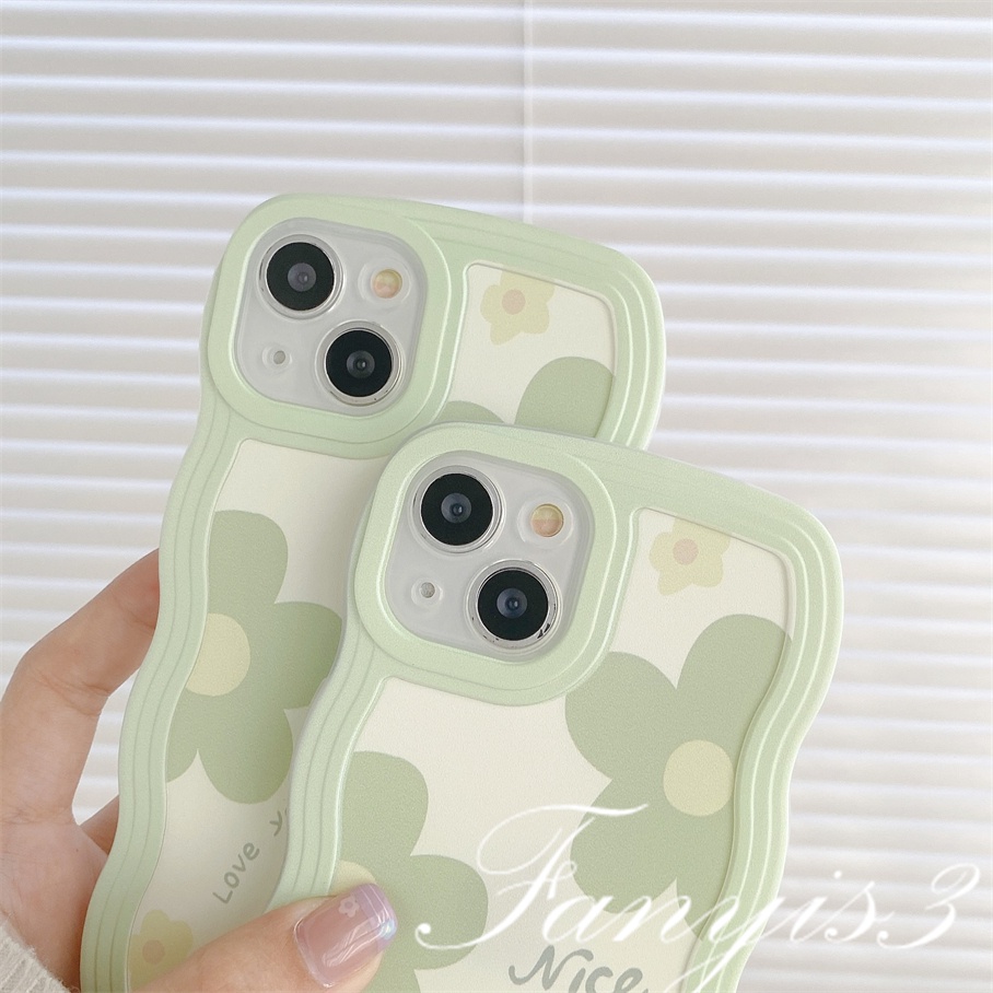 Handphone & Aksesoris > Casing & Skin > Casing & Skin Handphone > Compatible For iPhone 14 13 12 11 Pro Max X XR Xs Max 8 7 6 6s Plus SE 2020 Kompatibel Untuk Ins Green Floret Flowers Wave Frame Phone Case TPU Soft Cover