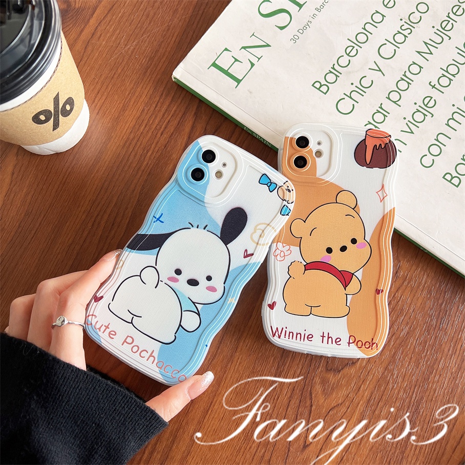 Detail Compatible For iPhone 14 13 12 11 Pro Max X XR Xs Max 8 7 6 6s Plus SE 2020 Kompatibel Untuk Kartun Anjing Dan Beruang Gelombang Frame Phone Case TPU Lembut Cover Pelindung