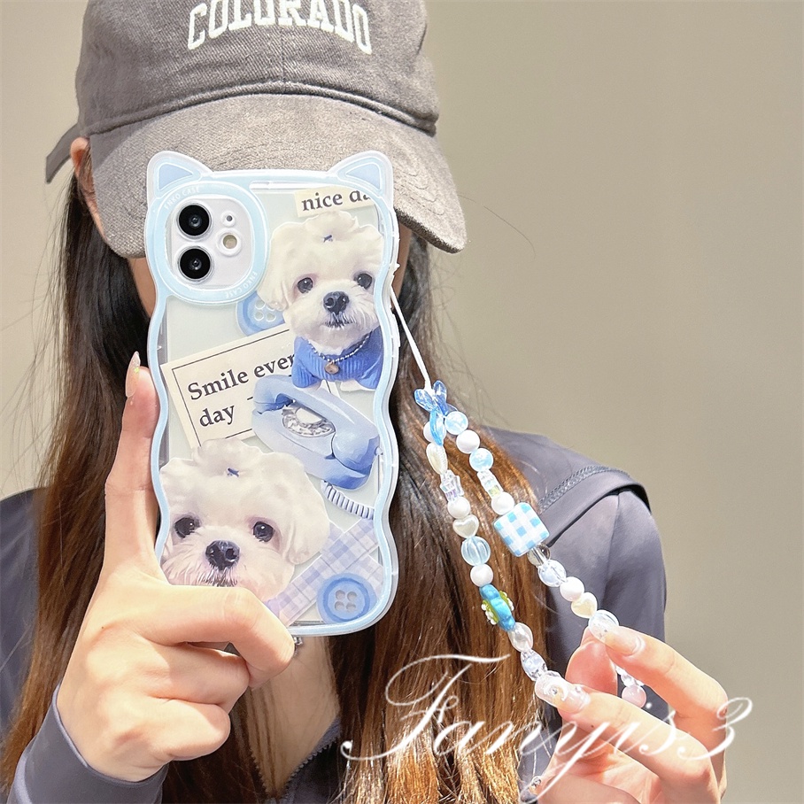 Handphone & Aksesoris > Casing & Skin > Casing & Skin Handphone > Compatible For iPhone 14 13 12 11 Pro Max X XR Xs Max 8 7 6 6s Plus SE 2020 Kompatibel Untuk Warna Biru Anjing Kucing Telinga Ponsel Case Bening Lembut Sarung Pelindung Dengan Rantai