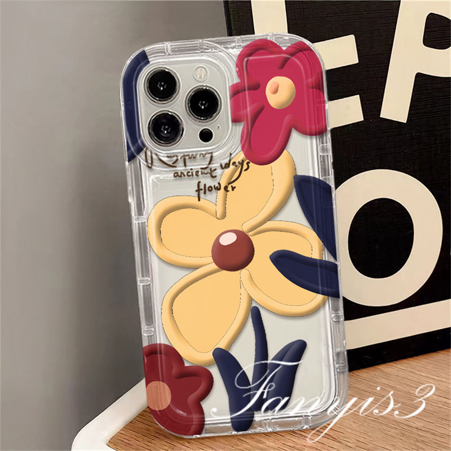 Handphone & Aksesoris > Casing & Skin > Casing & Skin Handphone > Compatible For IPhone 14 13 12 11 Pro Max X XR Xs Max 8 7 Plus SE 2020 Kompatibel Untuk Ins Bunga Besar Casing Ponsel TPU Bening Soft Cover