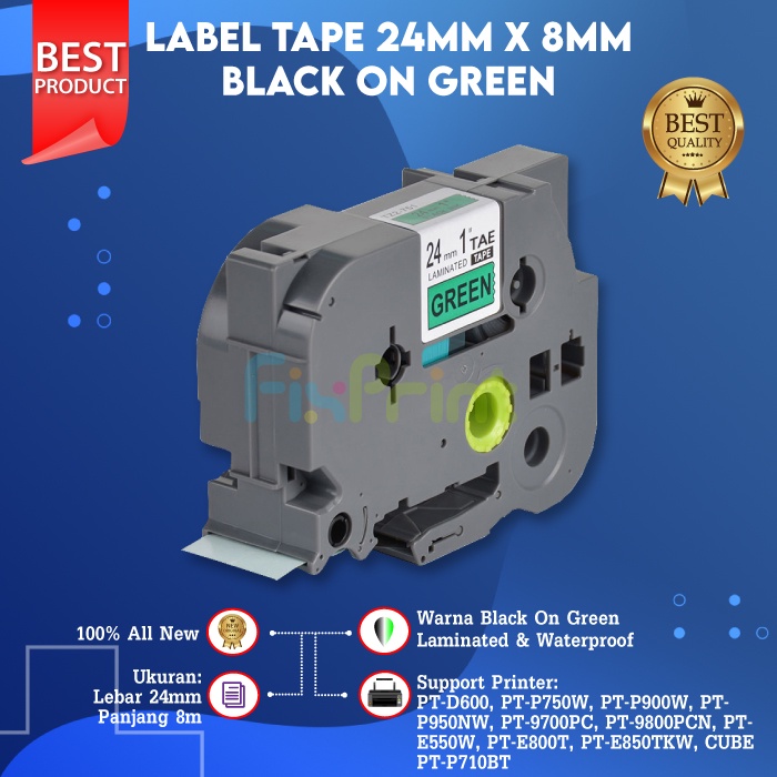 Detail Compatible Label Tape Laminated TZE-751 24mm X 8m Black On Green Cassette Printer Bro PT-9800PCN PT-P750W PT-P900W PT-P950NW PT-9700PC PT-E550W PT-E800T PT-E850TKW PT-P710BT