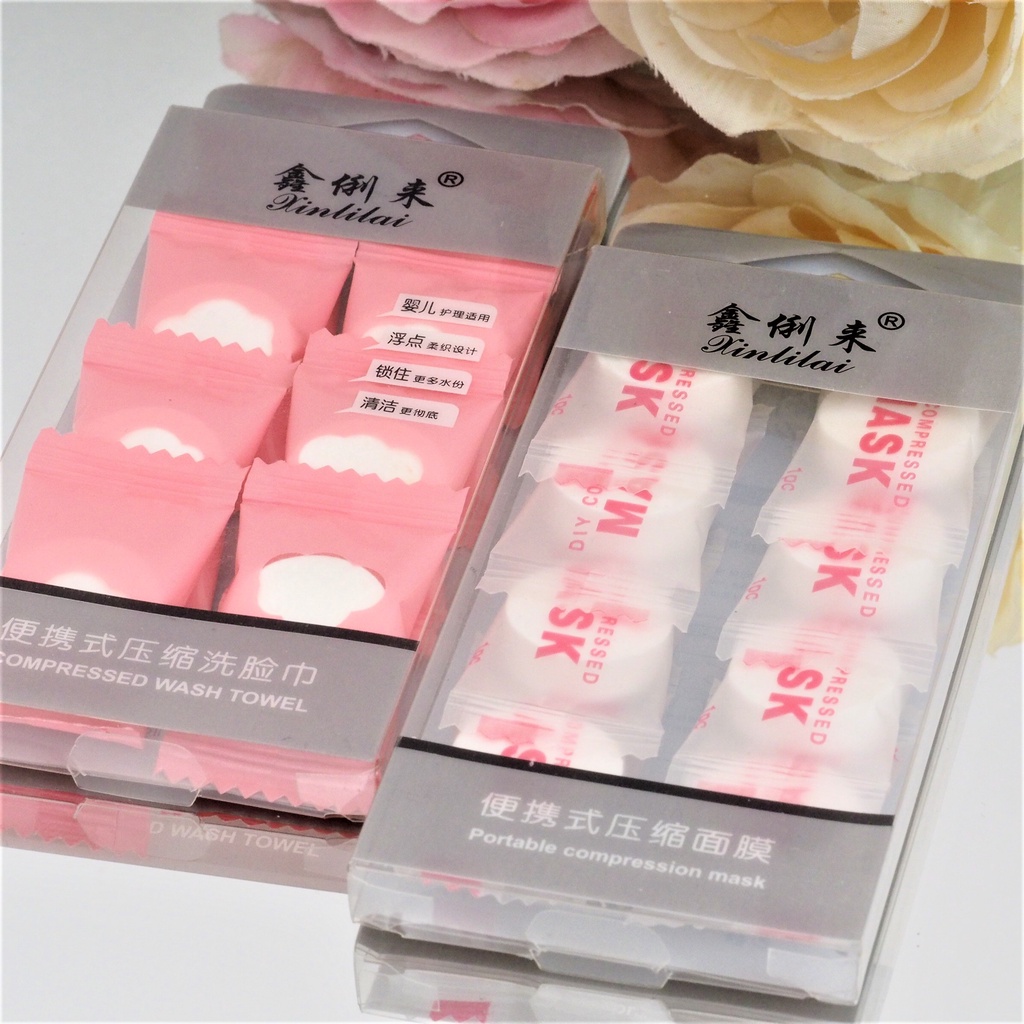 Detail Compressed Mask BOX ISI 8 PCS Compress Facial Sheet Face Paper DIY Masker Permen Wajah Pink Putih