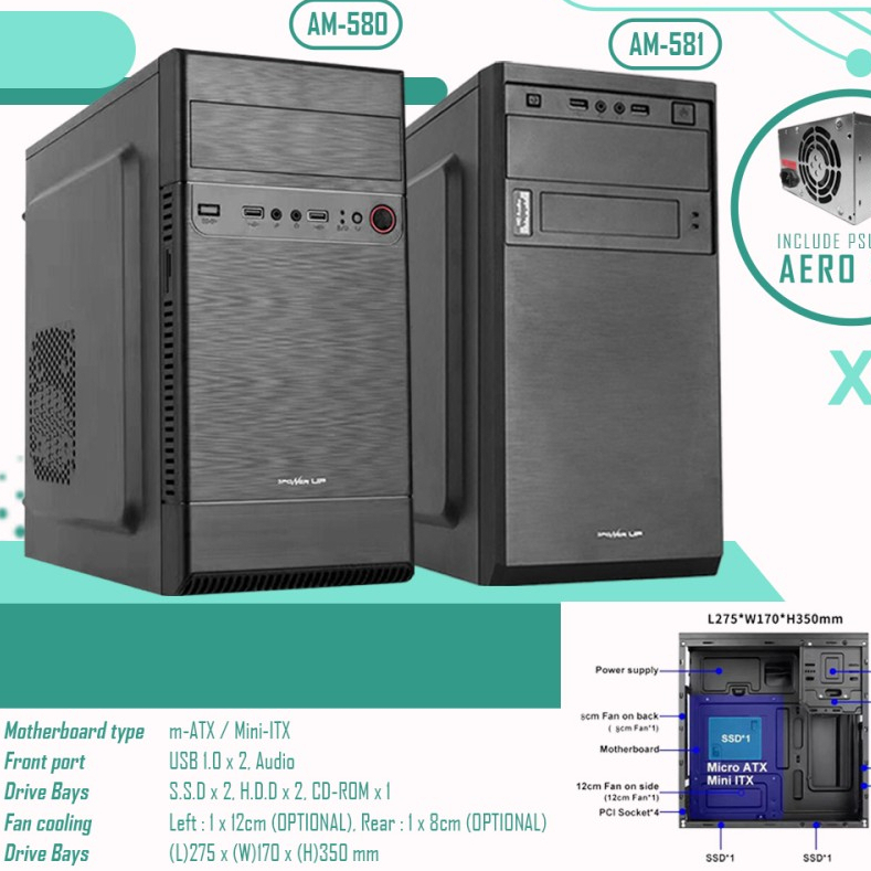 - Computer case AEROMAX AM-581 support dengan motherboard m-ATX.