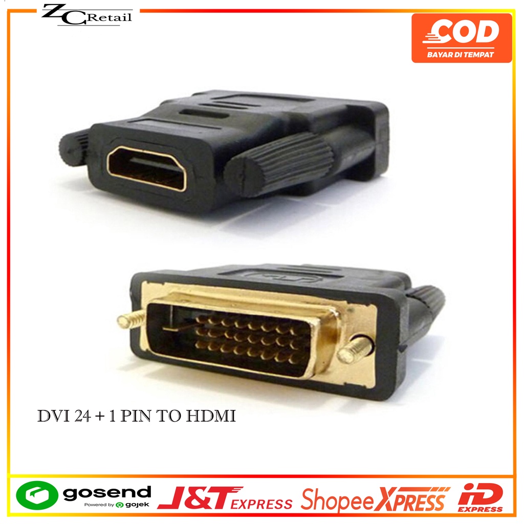 CONVERTER HDMI FEMALE TO DVI MALE 24+1 converter HDMI female to DVI - d pin 24+1 male gold plate. Alat untuk mengubah (gender) port dvi-d (24+1) menjadi port hdmi