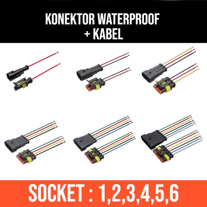 Connector Konektor Kabel Waterproof 1 2 3 4 5 6 Pin P Soket Socket Motor Mobil 1P 2P 3P 4P 5P 6P
