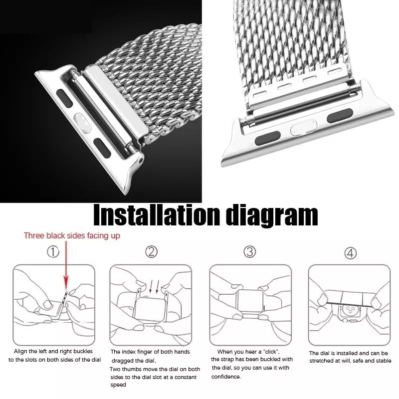 Dengan connector strap ini kamu bisa menggunakan strap universal yang sangat mudah ditemukan di market dengan desain yang beragam dan moderen yang mungkin saja tidak dibuat khusus untuk iwatch. Dengan kualitas premium dan terbuat dari stainless steel membuat tampilan iwatch kamu semakin kerennn bangettt!