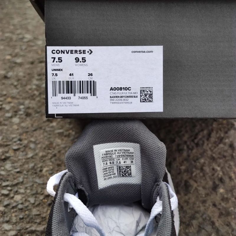 READY ================================== CONVERSE CTAS FLUX ULTRA MID lifestyle for mens (A00810C) Paduan Warna: Black/Iron Grey/Blue Komposisi : Upper : 100% Poliester Sol : 100% Busa Eva Made in Vietnam ================================== Size 41 (26cm)