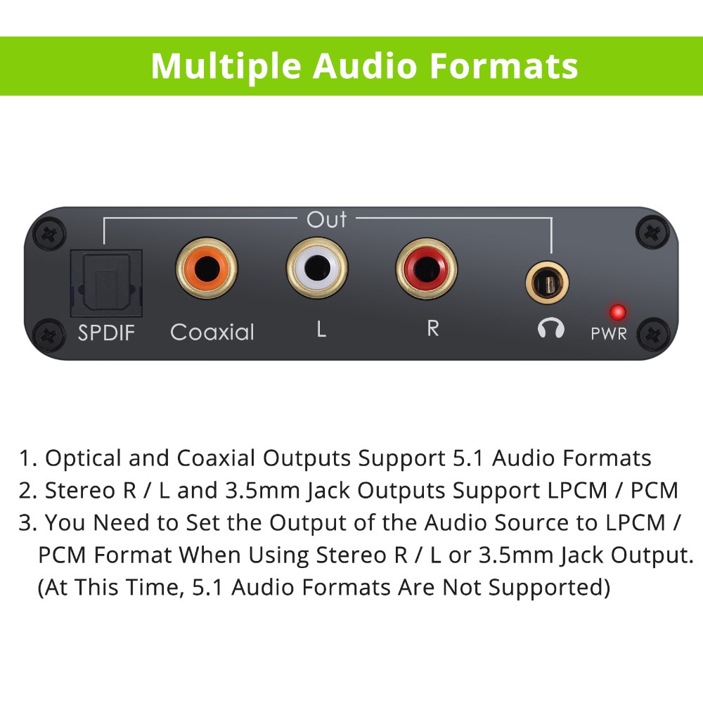 Detail Converter DAC Channel Bolak Balik Audio Kompatibel HDMI Dengan Digital Optik SPDIF Coaxial Analog 3.5mm Stereo Audio Converter