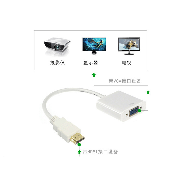 Deskripsi Produk : converter hdmi to vga putih Product Type: HDMI Male to VGA Female Converter adapter. HDMI input: the HDMI input interface. VGA output: VGA signal output interface. Weight: About 26cm
