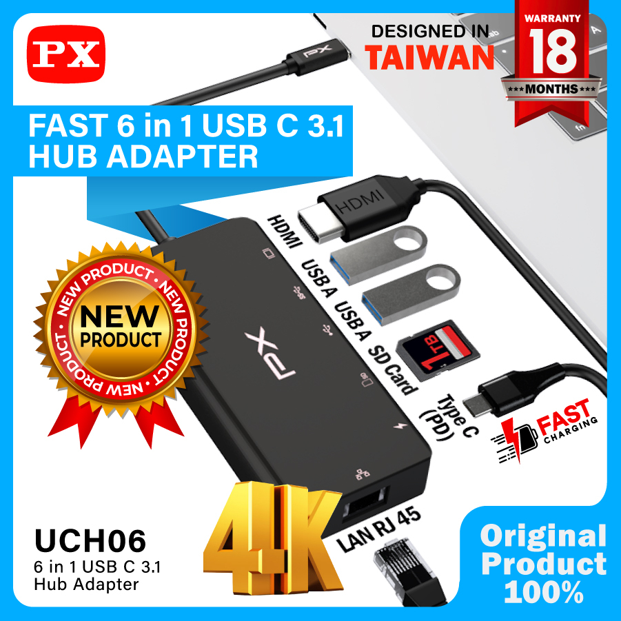 Komputer & Aksesoris > Aksesoris Desktop & Laptop > USB HUB & Card Reader > Converter Hub Adapter 6 in 1 Type C 3.1 to HDMI LAN 6 in 1 PX UCH06