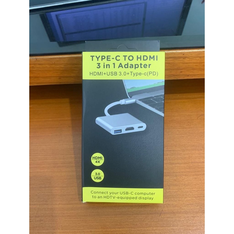 Converter Konektor USB Type C to 3 in 1 HDMI USB 3.0 PD USB C Power Delivery Hub Dongle