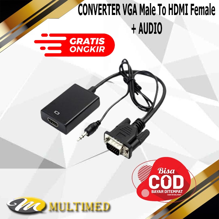 Kabel VGA to HDMI Untuk menghubungkan dari perangkat PC atau laptop ke smart TV, sehingga Anda dapat melihat tampilan yang ada di laptop dengan TV Anda Port : Gold plated Memungkinkan kabel tidak akan mudah rusak serta memiliki arus yang lebih baik, sehingga tampilan pada TV Anda akan lebih jernih dan tajam Mendukung resolusi 720p/1080p/1080i serta dilengkapi dengan fitur plug & play dan audio