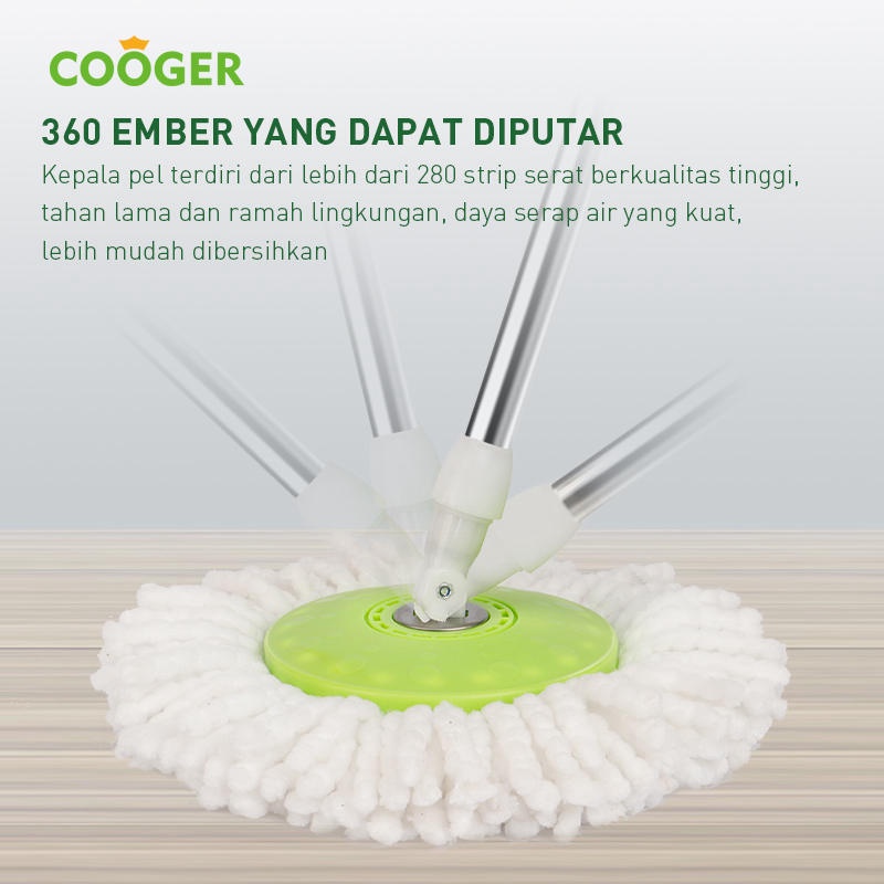Perlengkapan Rumah > Alat Pemeliharaan Rumah > Kain Pel > COOGER Spin Mop Alat Pel Lantai Microfiber Dapat Berputar 360 Derajat Otomatis Dengan Bak Wadah Air Pel Dilengkapi Pemerasan