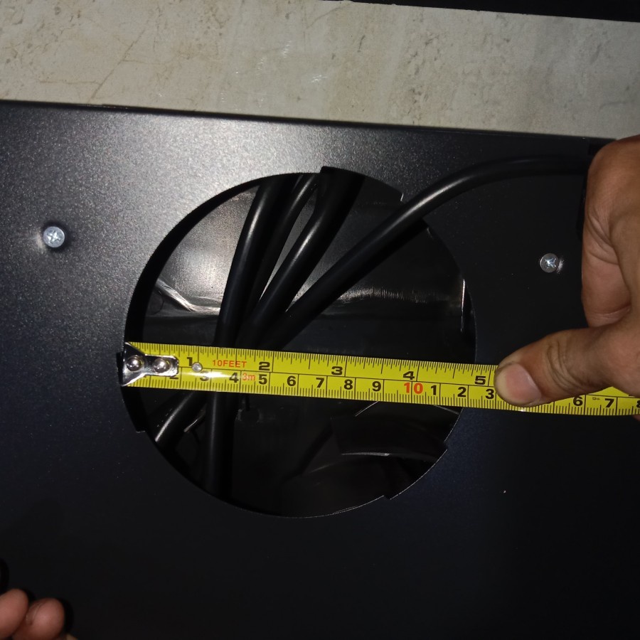 Spesifikasi Ukuran : 595 (P) x 480 (L) x 100 (T) - (mm) Daya listrik : 74 Watt Additional description : Low noise level, Double sirocco fan, Recycle/ventilation system, Charcoal Filter, Delay cut off timer Warna : Black