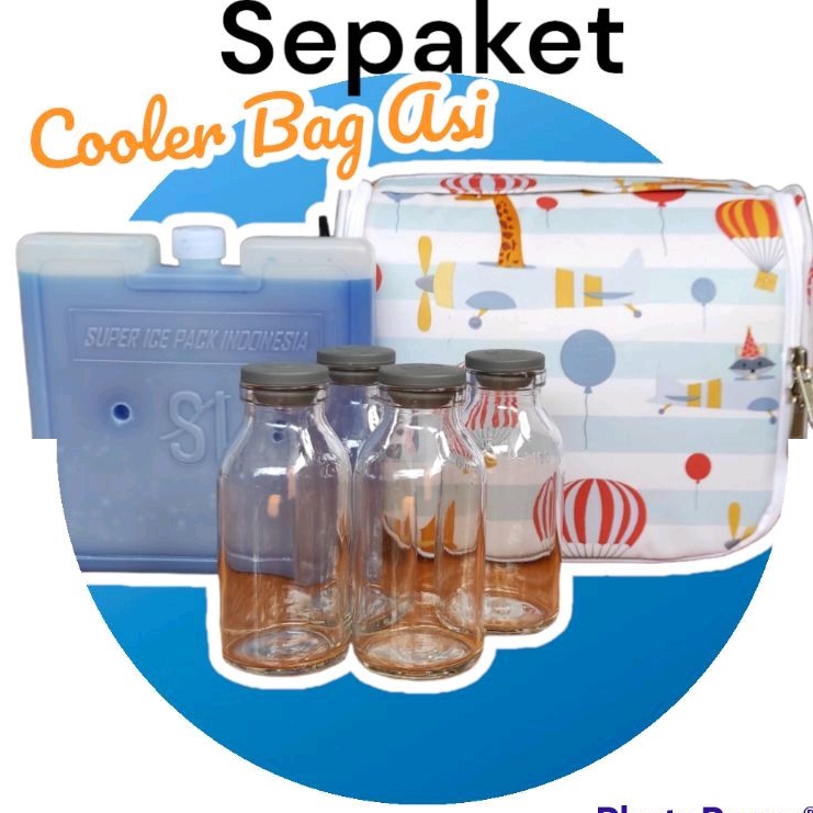 Cooler Bag Asi SEPAKET Ice Pack Gel + 4 Botol Asi Kaca