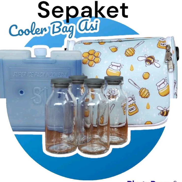 Cooler Bag Asi SEPAKET Ice Pack Gel + 4 Botol Asi Kaca